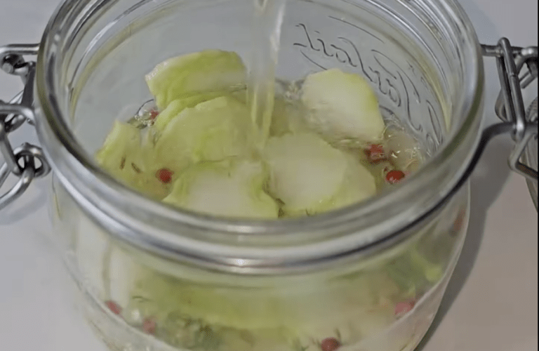 Faire bouillir puis verser sur les rondelles de « cornichon »
